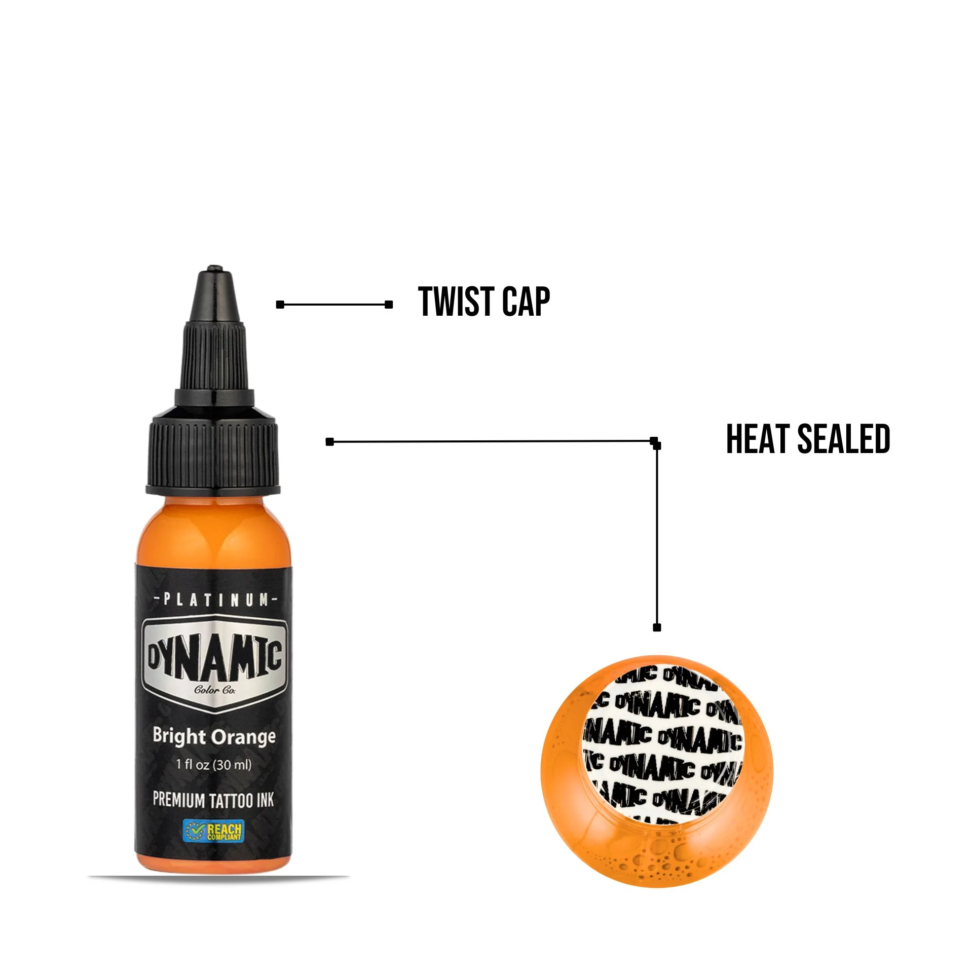 Bright Orange Dynamic Platinum es una tinta profesional para tatuaje compatible con la normativa REACH, apta para uso en Europa y mercados internacionales. Forma parte de la línea Dynamic Platinum, diseñada para ofrecer alta concentración de pigmento, flujo uniforme y aplicación precisa en todo tipo de trabajos.