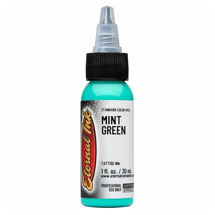 La tinta para tatuajes Eternal Mint Green es un pigmento profesional de alta calidad que ofrece un tono verde menta intenso, limpio y estable, diseñado para mantener su fuerza y claridad con el paso del tiempo. Su acabado fresco y equilibrado la convierte en una excelente opción para aportar vitalidad, contraste y profundidad a todo tipo de composiciones.
