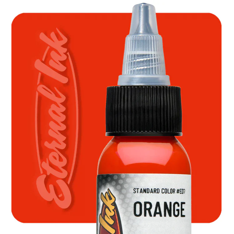 Eternal Orange es una elección confiable para tatuadores que buscan un naranja sólido, luminoso y consistente, capaz de mantener su carácter con el paso del tiempo.