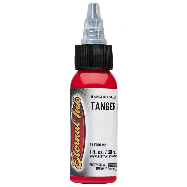 La tinta para tatuajes Eternal Tangerine es un pigmento de alta calidad que presenta un tono naranja vibrante con sutiles matices rojizos, ideal para aportar energía, calidez y dinamismo a tus diseños. Su intensidad cromática la hace perfecta para detalles llamativos, acentos de color y elementos que buscan un alto impacto visual sin perder estabilidad en la piel.